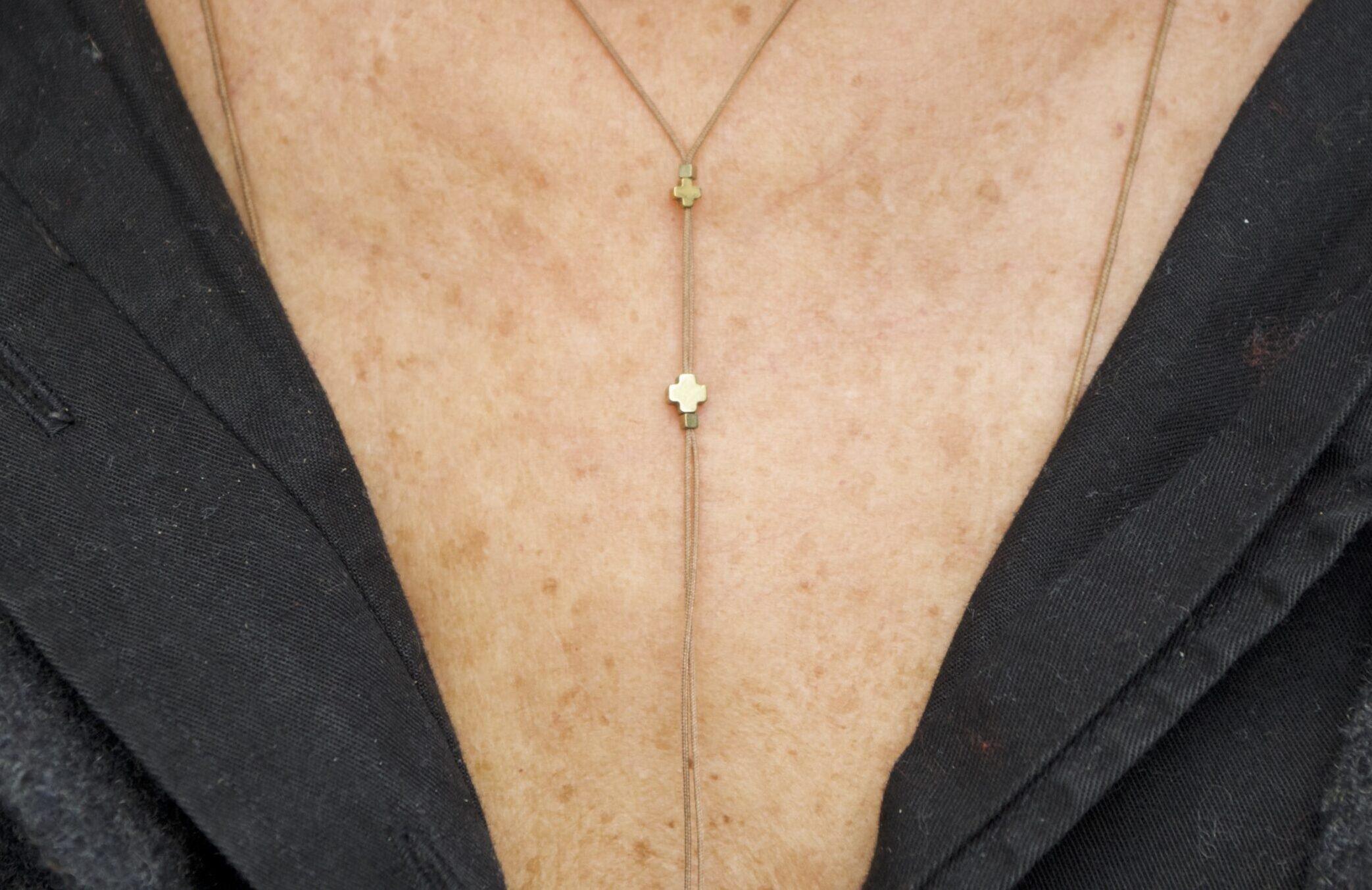 À porter sur peau nue, sur un col roulé ou en layering avec d’autres colliers Danila f.